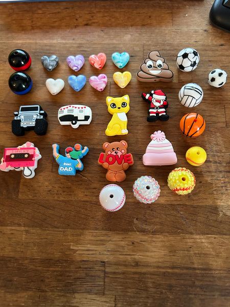 These are custom beadable pens. Any color and focal bead you want. Focal beads are pictured and they can be seen on our Facebook Group. Let us know in the notes at checkout if you want bling or no bling.