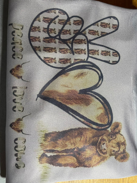 Peace love cows sublimation tshirt. This will come in white ONLY! Please put in notes if you want the splatter around your design. Refer to Watercolor skull or MS awareness shirts to see what the splatter design looks like.