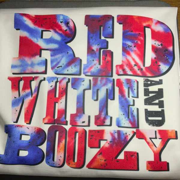 Red white and boozy sublimation T-shirt. These are put on 100% polyester shirts. This shirt will come in white ONLY! Please leave note if you want the splatter around design. Refer to Watercolor skull T-shirt posting if needed.